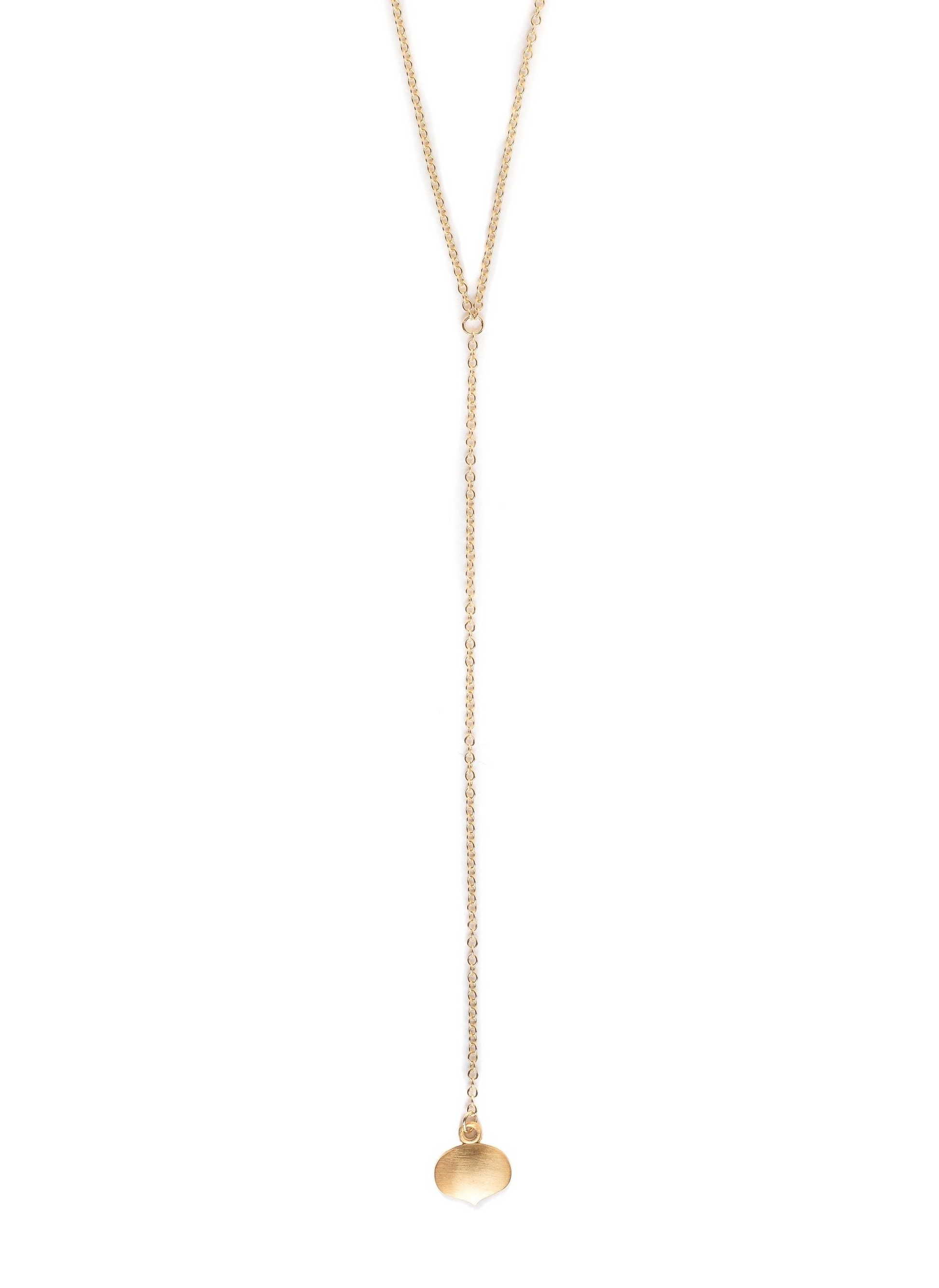 SPECIFICS: Gold filled chain with plated pendant. Necklace length adjustable 14” with an extra adjustable inch , lariat drop 4”.